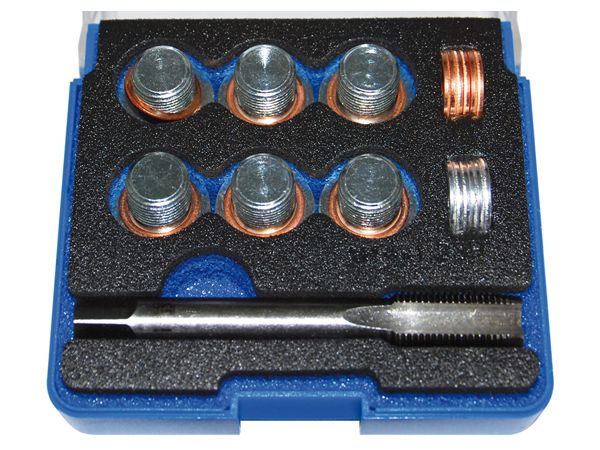 Určeno na opravy stržených, opotřebovaných a jinak poškozených závitů výpustí olejových van. Set obsahuje vše, co je pro práci potřeba.
