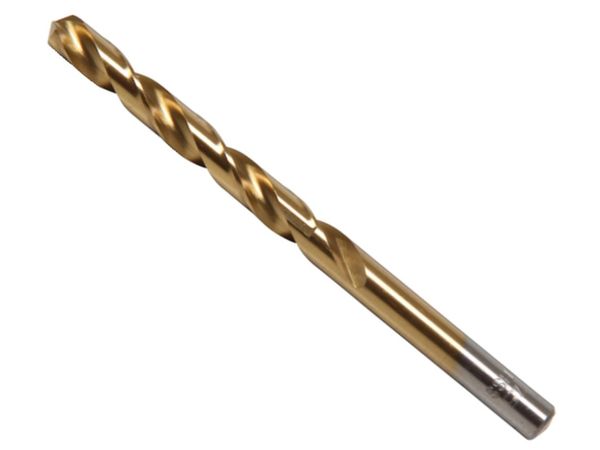 Spirálový vrták HSS-G s válcovou stopkou a TiN povrchem.