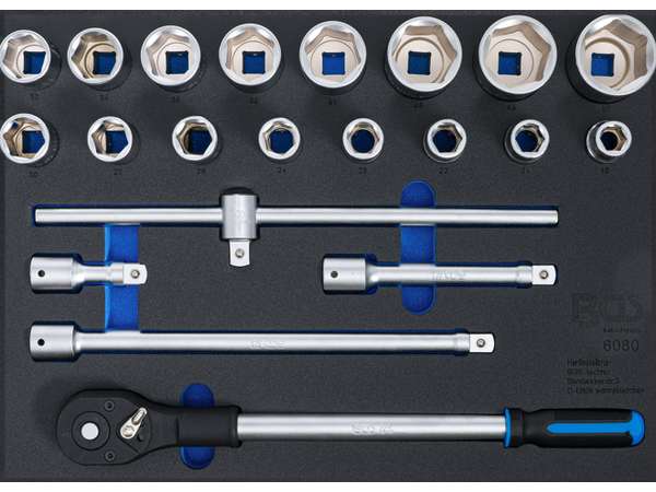 BGS Technic BGS 6080 Vložka do dílenského vozíku 3/3: ráčna + nástrčné hlavice 3/4" 19 ÷ 5