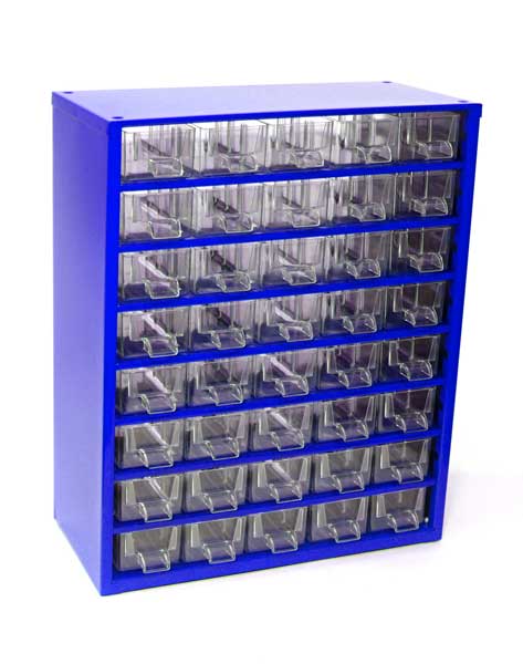 40 malých zásuvek (vhodné např. na spojovací materiál, malé kousky nářadí atd.).