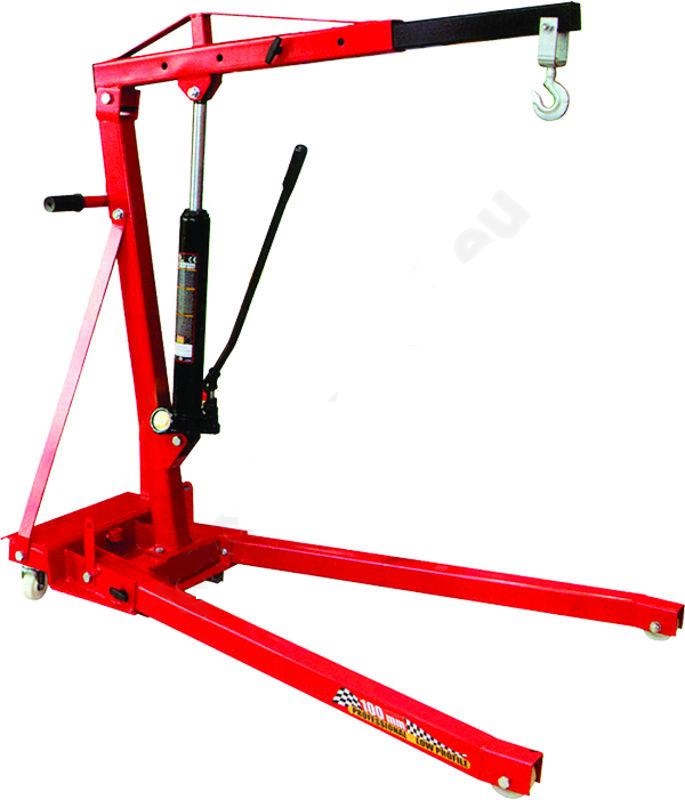 Pojízdný skládací hydraulický dílenský jeřáb ("žirafa") s nosností 1 t se používá zejména pro zvedání a ukládání agregátů při jejich montáži a demontáži. Nosné rameno má několik poloh vysunutí a podle toho se také řídí nosnost jeřábu. Ergonomicky tvarovaná páka pro zvedání je otočná o 360°. Spouštění se realizuje otočným ovládacím elementem. Tento pojízdný dílenský zvedák má velmi odolnou konstrukci pro dlouhou životnost i v náročném nasazení a kvalitní hydrauliku nové generace. Podvozkové nohy s nylonovými kolečky (nízkoprofilové s výškou jen 80 mm) i nosné rameno lze sklopit (složit dohromady), takže jeřábový vozík ve složeném stavu zabírá jen minimální prostor.