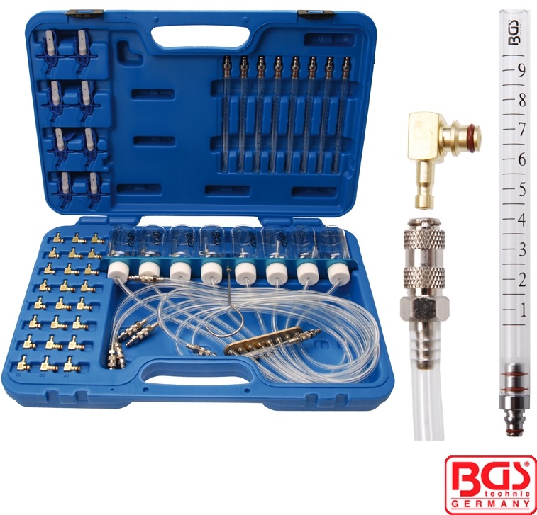 - Sada pro měření průtoku paliva vstřikovacími tryskami až pro 8 válcové motory