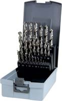 Sada 25 Výkonných, leštěných standartních přesných vrtáků z rychlořezné oceli.
