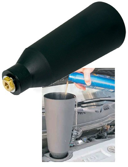 Speciální trychtýř pro snadné a čisté plnění motorového oleje s bajonetovým adaptérem přímo do plnicího otvoru je určený pro automobily koncernu Volkswagen (VW, Audi, Škoda, SEAT - i pro novější modely), BMW, Mercedes-Benz, Toyota, Mitsubishi atd. Umožňuje přímé a hlavně těsné připojení na hrdla/otvory pro plnění motorových olejů.