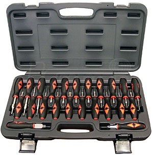 Velká 23-dílná universální sada pro snadné, rychlé rozpojování konektorů pokrývá většinu typů vidlicových, plochých i okrouhlých konektorů používaných v osobních automobilech bez nebezpečí jejich poškození. Sada se uplatní zejména při opravách elektroinstalace automobilů.